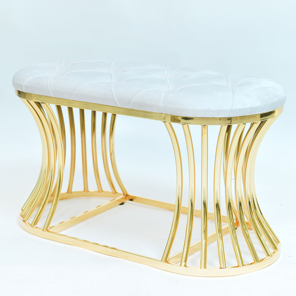 Το χρυσό σκαμπό με βελούδινο ύφασμα προσδίδει κομψότητα και πολυτέλεια σε κάθε κατάστημα. Ιδανικό για καταστήματα μόδας, δημιουργεί μία εντυπωσιακή ατμόσφαιρα και τραβά την προσοχή με τον συνδυασμό του χρυσού και του βελούδου.